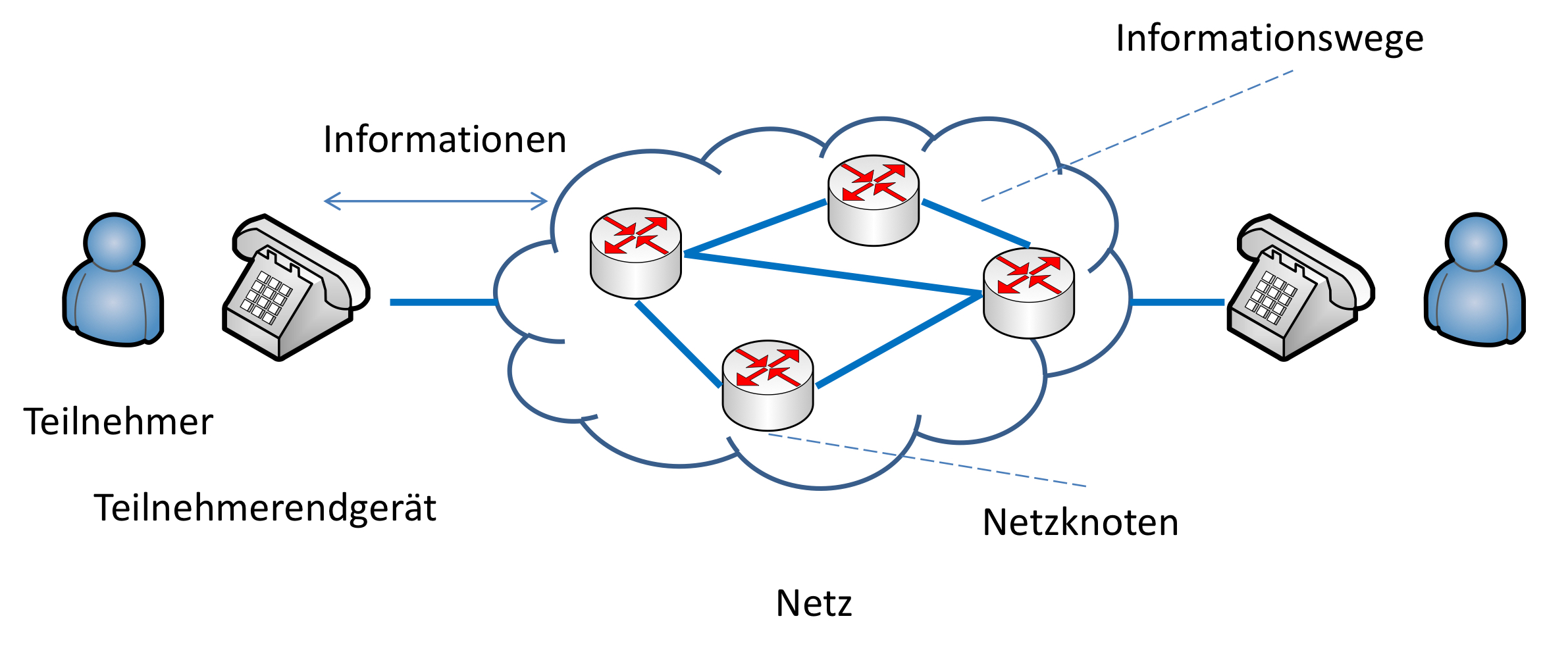 - Regel und Kommunikationsprotokollen : Der Informationsaustausch zwischen Endgeräten und/oder Netzknoten erfolgt anhand von wohldefinierten Regel, den Kommunikationsprotokollen