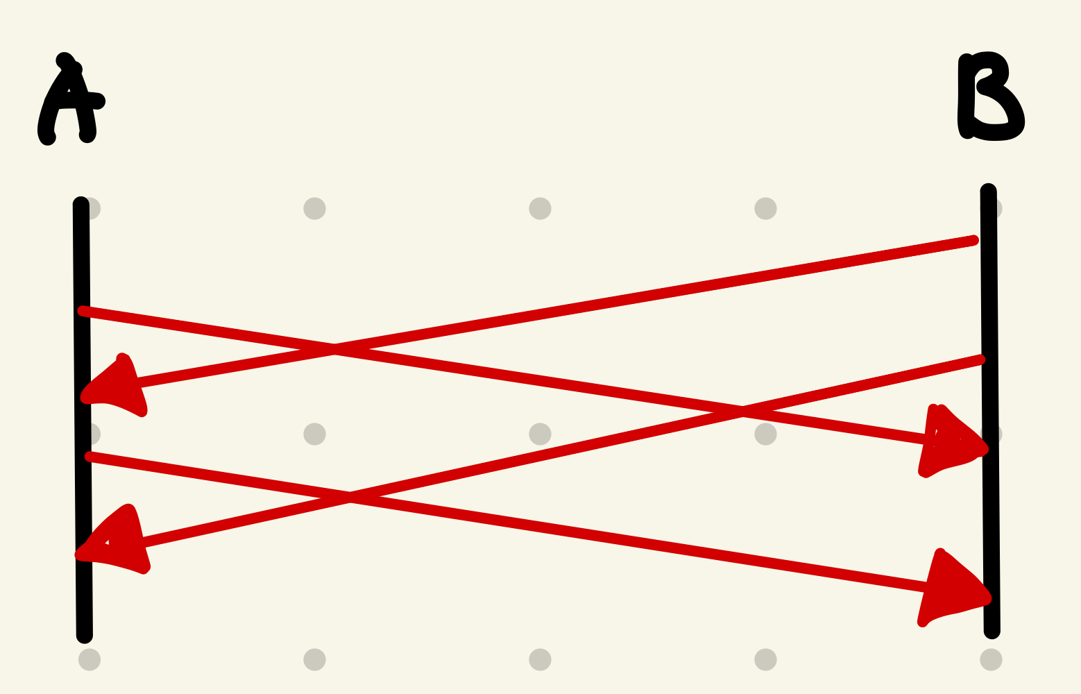 Nachricht kann abgesenden werden, bevor B die vorherige Nachright von A empfangen hat. überlappend senden A에서 B로 메세지를 겹쳐서 보낼 수 있다. |