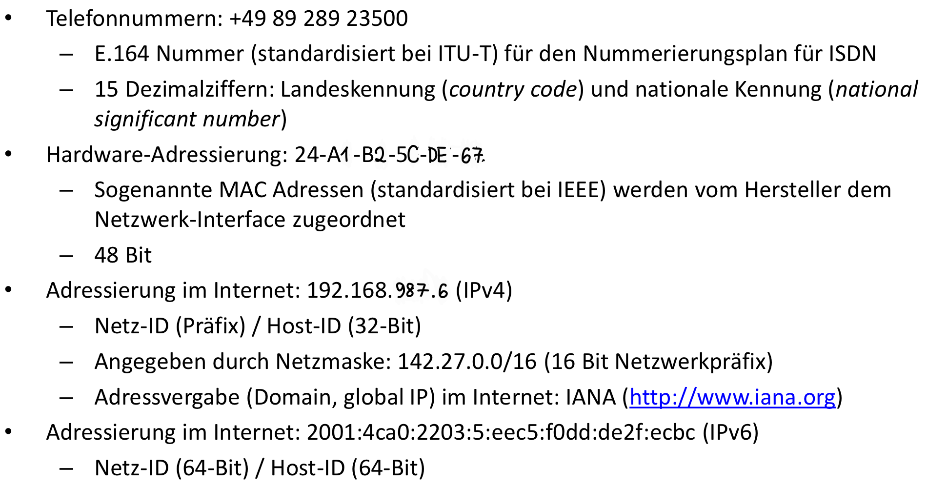 \( {\rightarrow} \) Adressen existieren auf verschiedenen Ebenen in einem Kommunikationsnetz