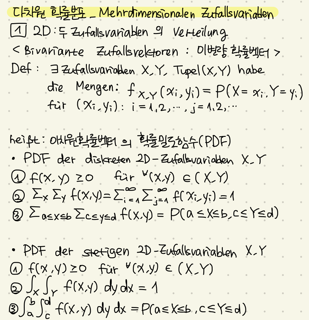 5.1 Mehrdimensionale Verteilungen : 다차원 확률변수