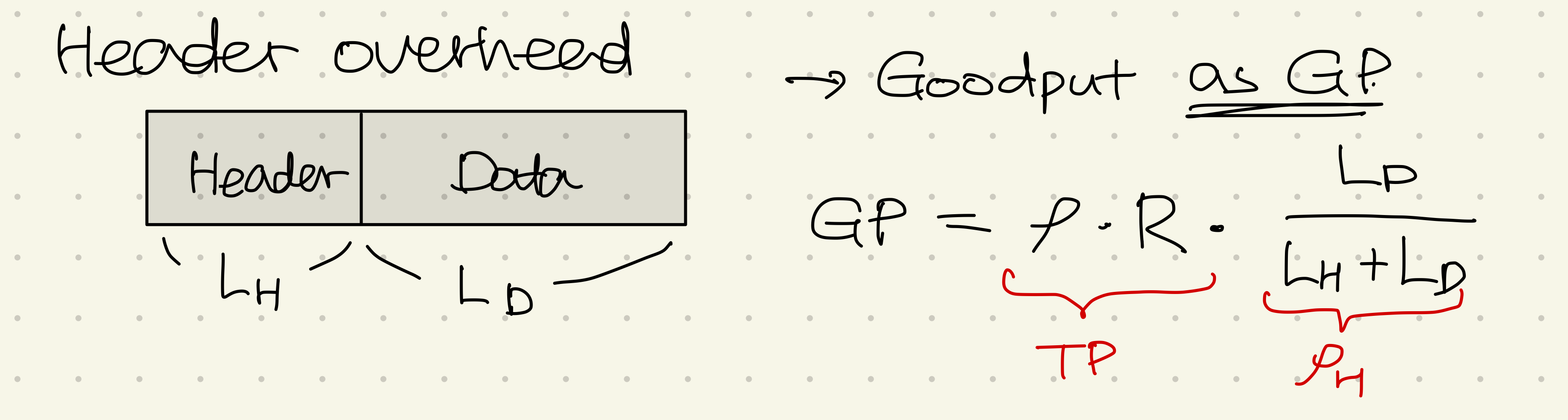 | $$TP = R * \rho $$ | $$ \rho = \cfrac{\mbox{sending time of successfully transmitted packets}}{\mbox{total duration of the transmission process}}$$ |