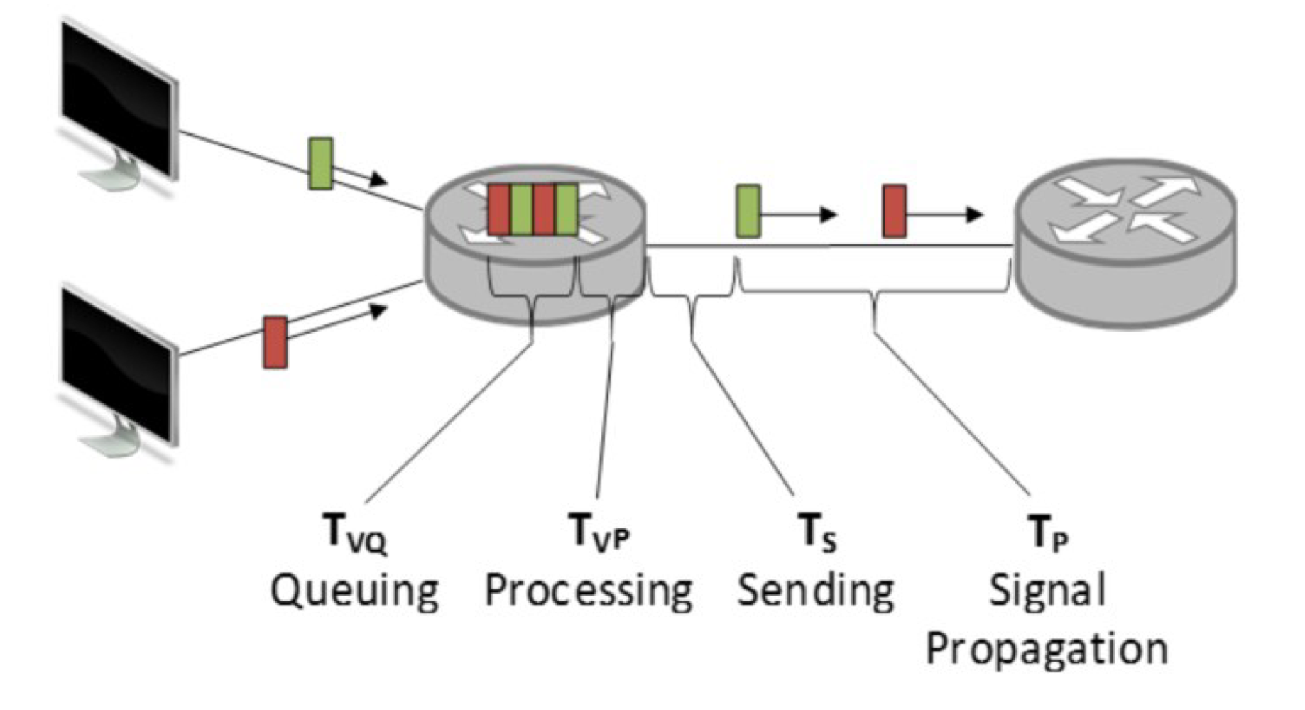 $$\mbox{Total delay : } T_{total} = T_{Vqueue} + T_{Vproc} + T_S + T_P $$