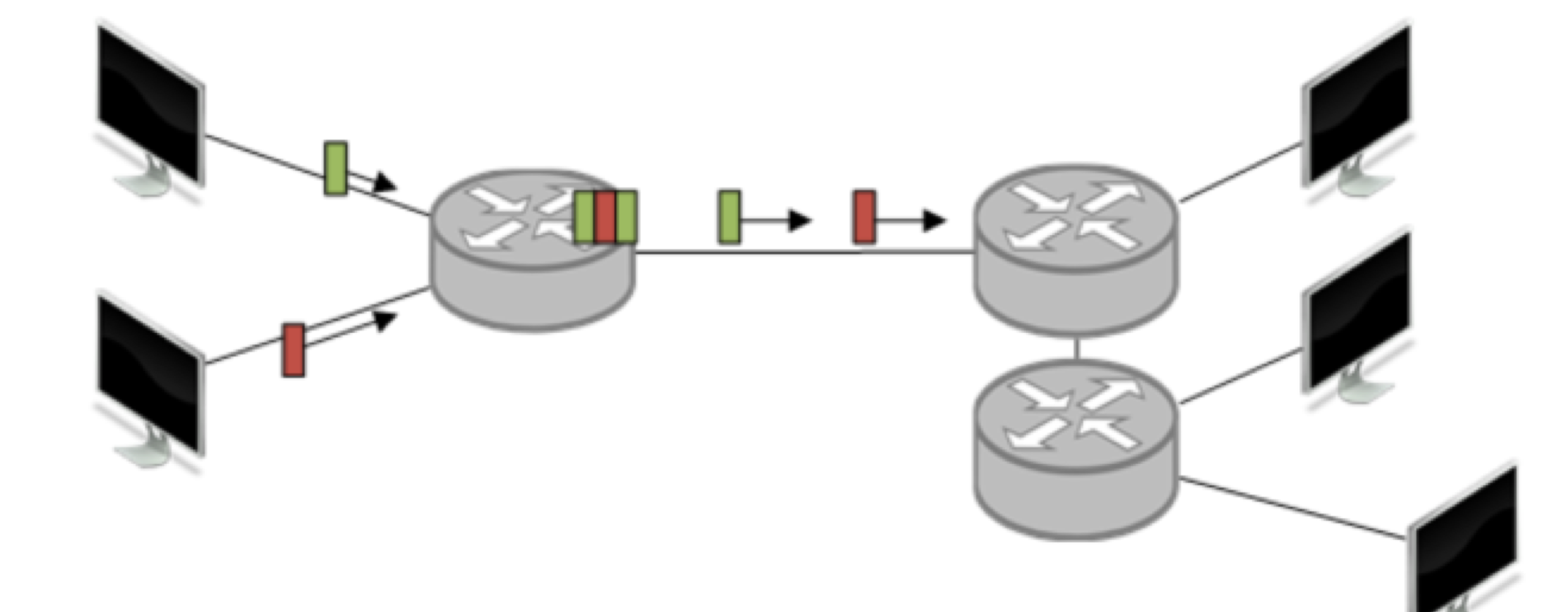 - If the buffer is full \(\rightarrow\) packets are dropped from the queue and are lost.