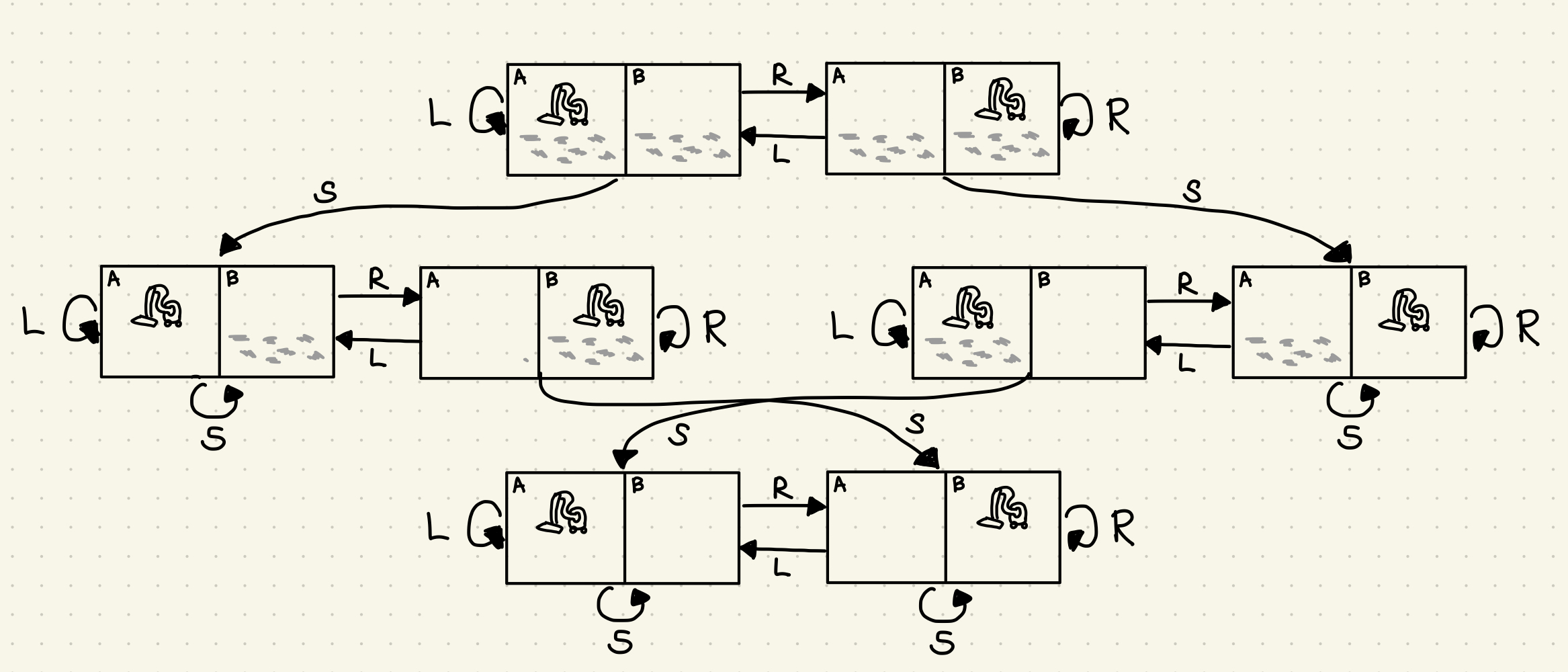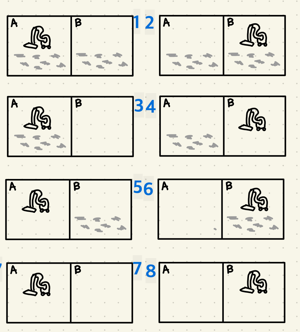 - States: Combination of cleanr and dirt locations: $$ 2 \bullet 2^{2} $$